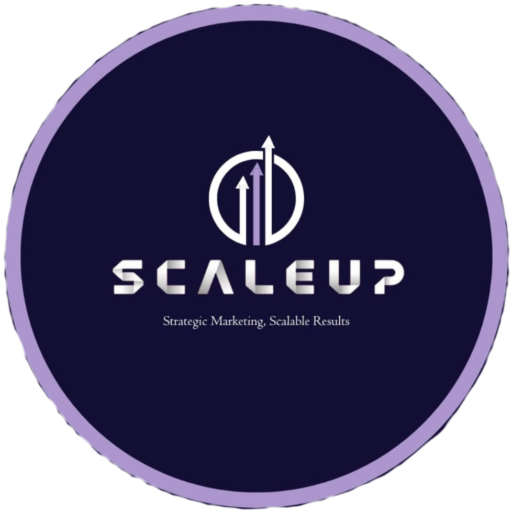 ScaleUp logo represents growth, performance, and business scaling with a modern upward arrow or graph-inspired design.